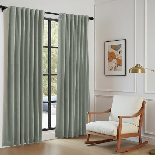 Blackout Velvet Curtains 84 Inches Long, 2 52W x 84L Pack of 2 Sage Green