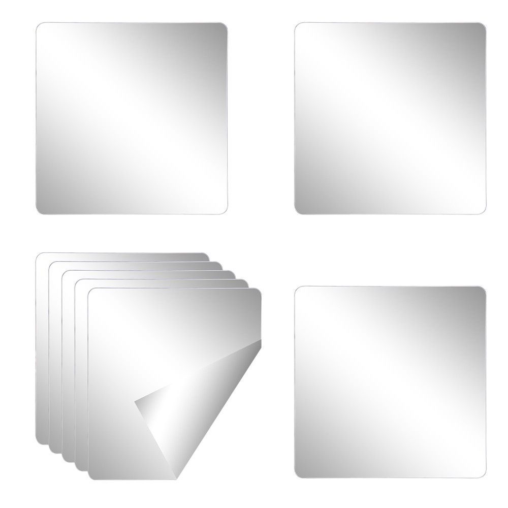 8 Pcs Self Adhesive Wall Tiles Square Peel and Stick Bath Mirror Glass