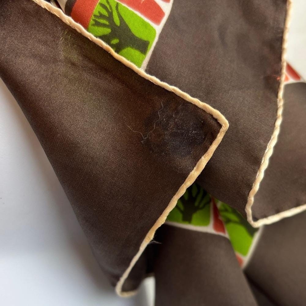 как выглядит Vintage Glentex 100 Pure Silk Scarf Brown/Green Tree Pattern Gorgeous фото