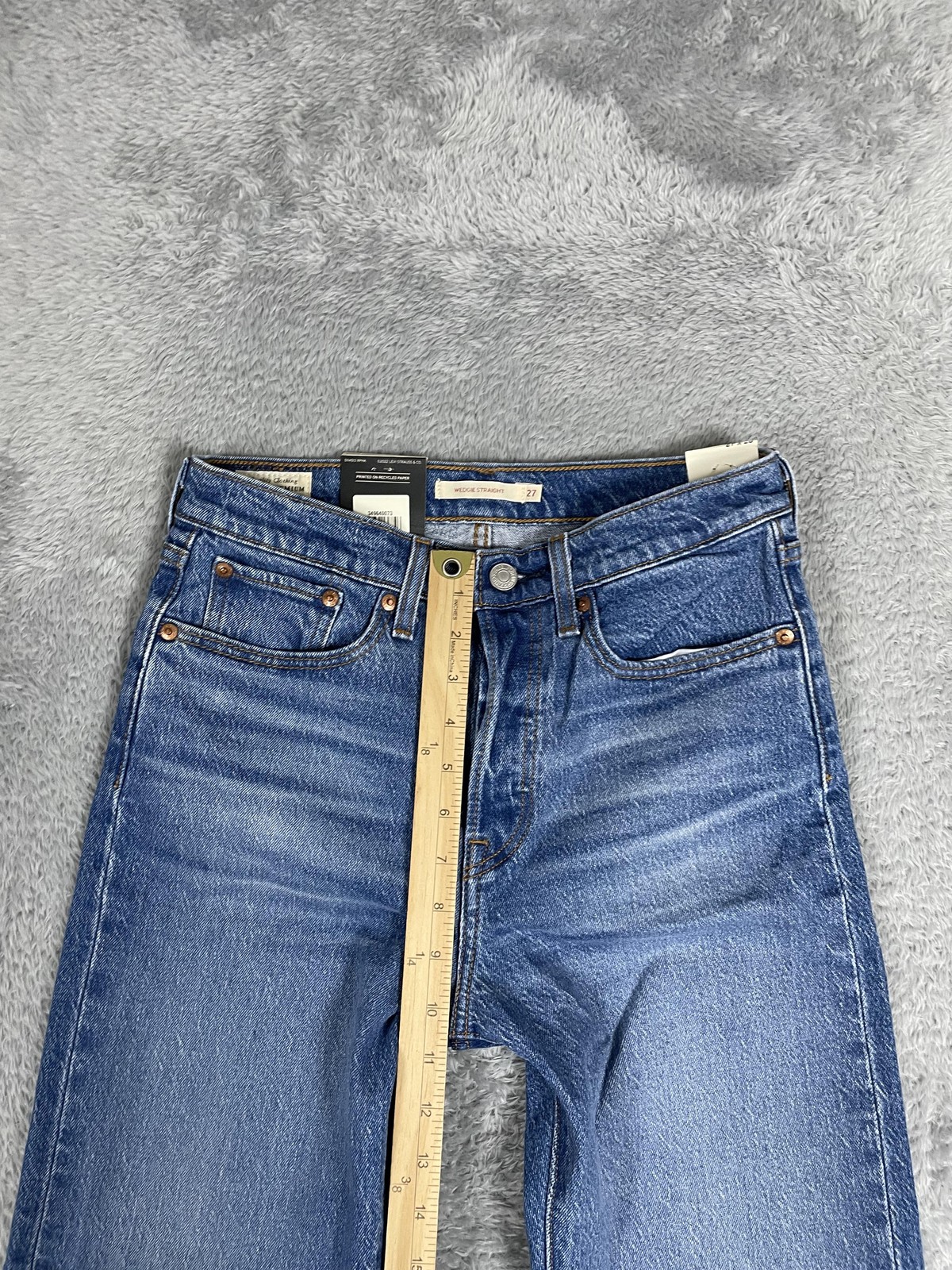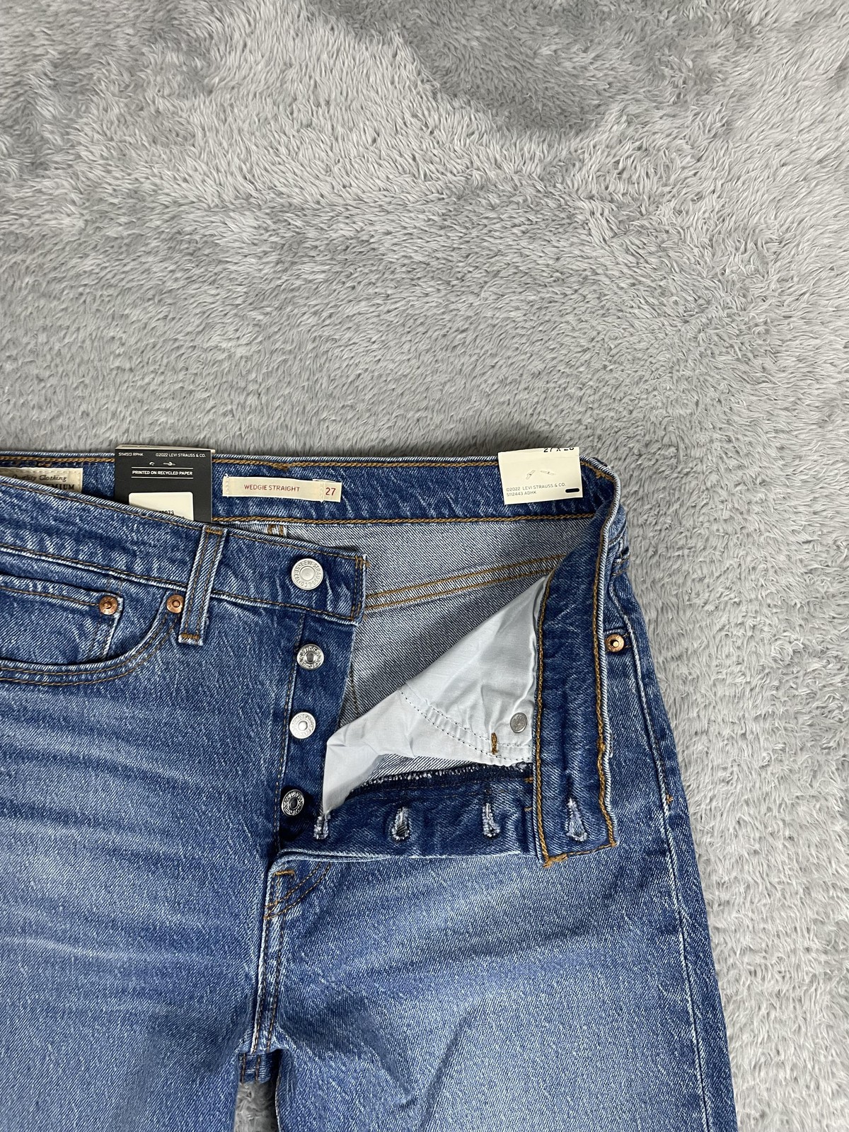 как выглядит Levis Wedgie Straight Jeans Womens 27x28 Blue High Rise Button Fly Denim NWT фото