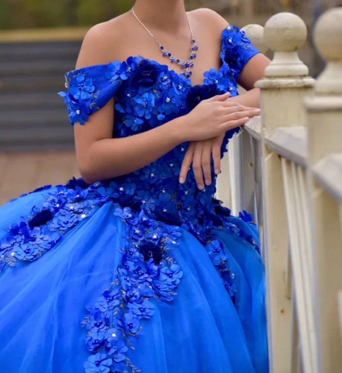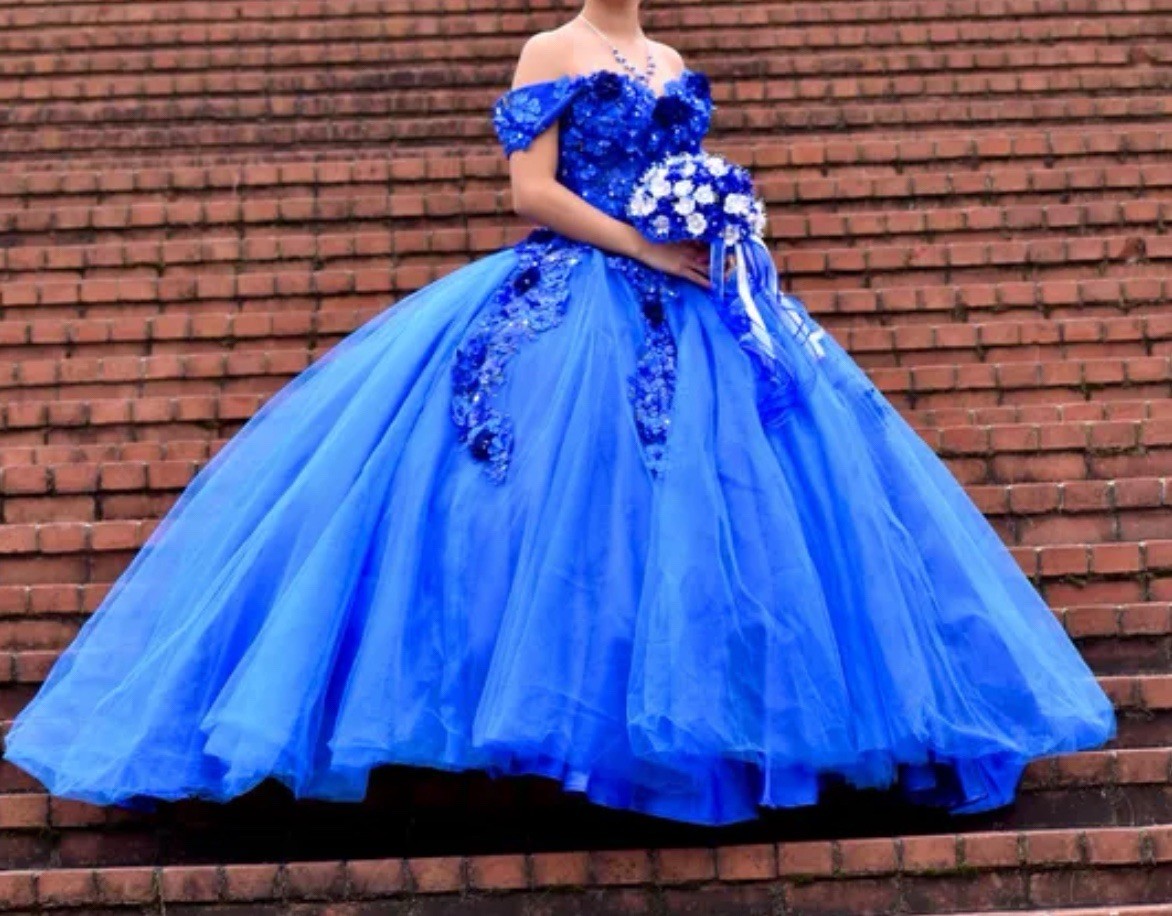 Royal Blue Quinceanera Dresses Ball Gown Beading Off Shoulder Flowers Lace-up