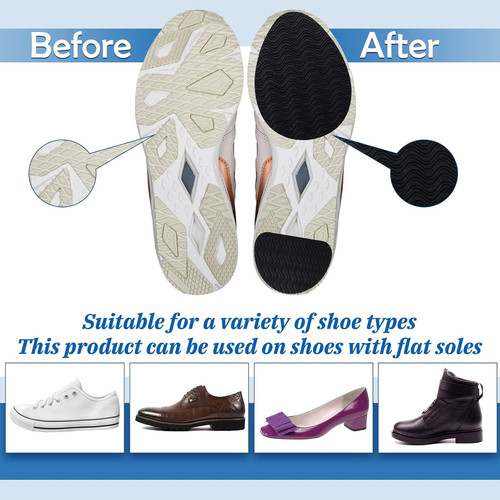 Syhood 16 Pcs Non-Slip Shoe Pads for Bottom of Shoes Rubber Self Black