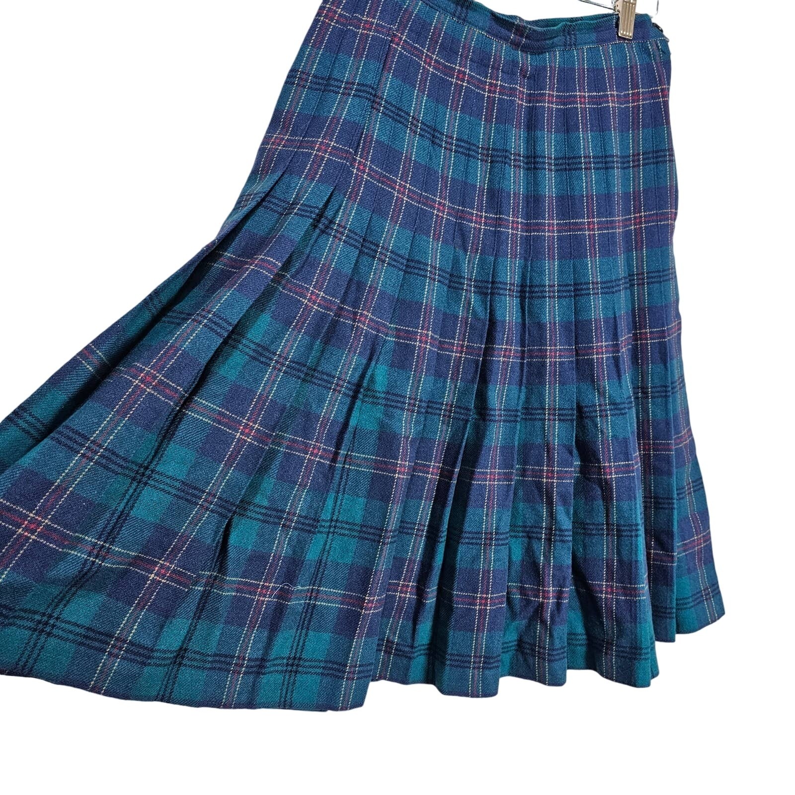 Pendleton Vintage 80s Skirt Womens Small 100 Virgin Wool Blue Plaid A-Line