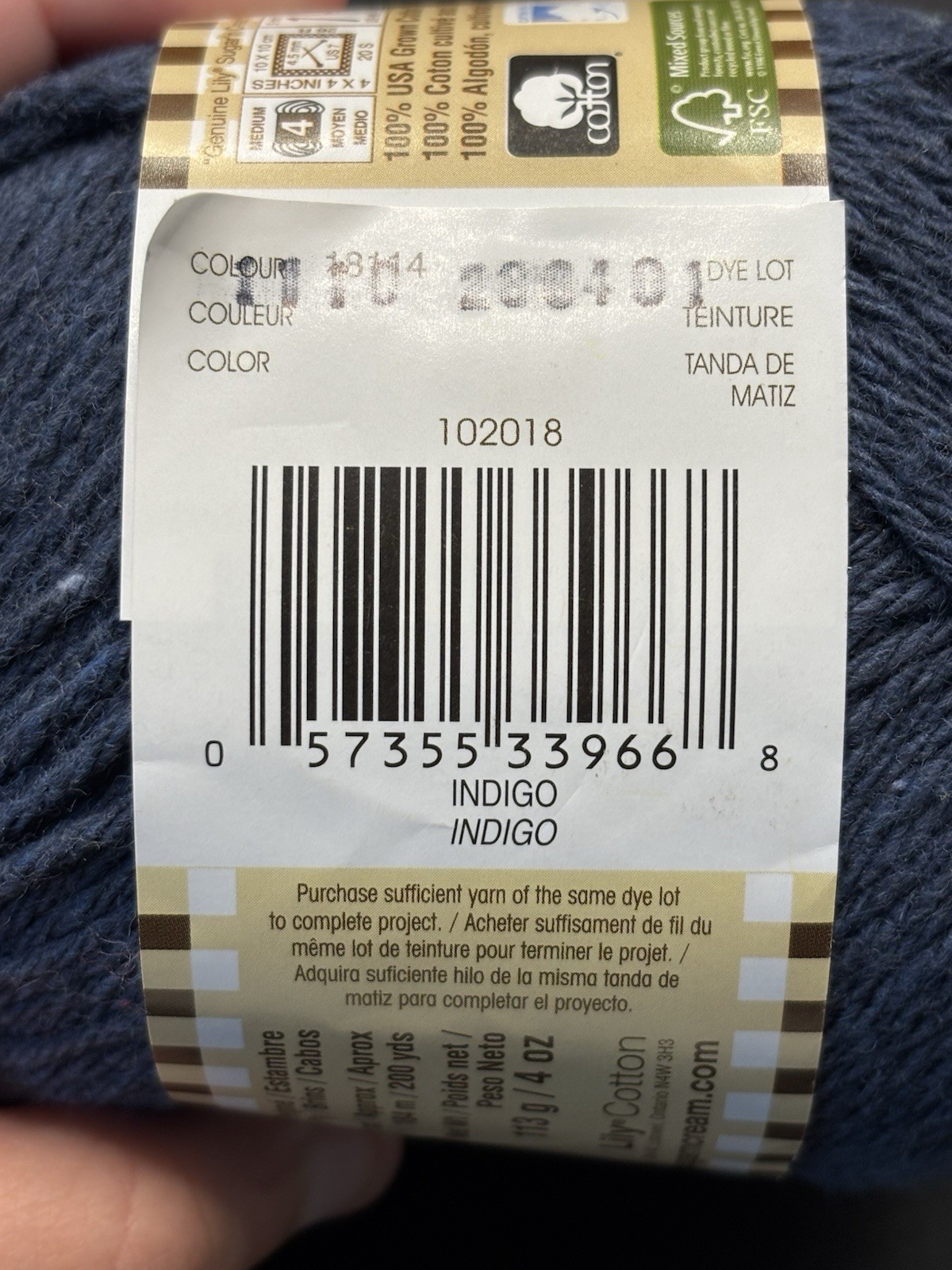 Lot Of Two New Sugar 'N Cream Super Size 100 Cotton Yarn Bundles- Ecru Indigo