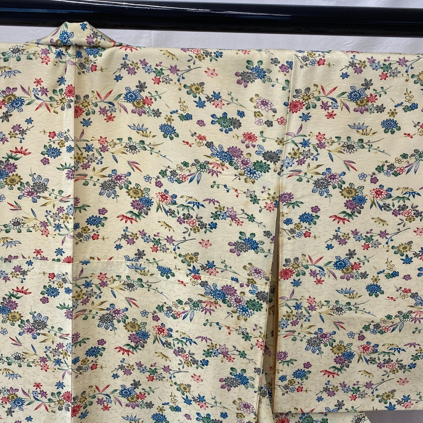 Japanese Vintage Kimono Silk Beige Komon Traditional Authentic Length 65 in