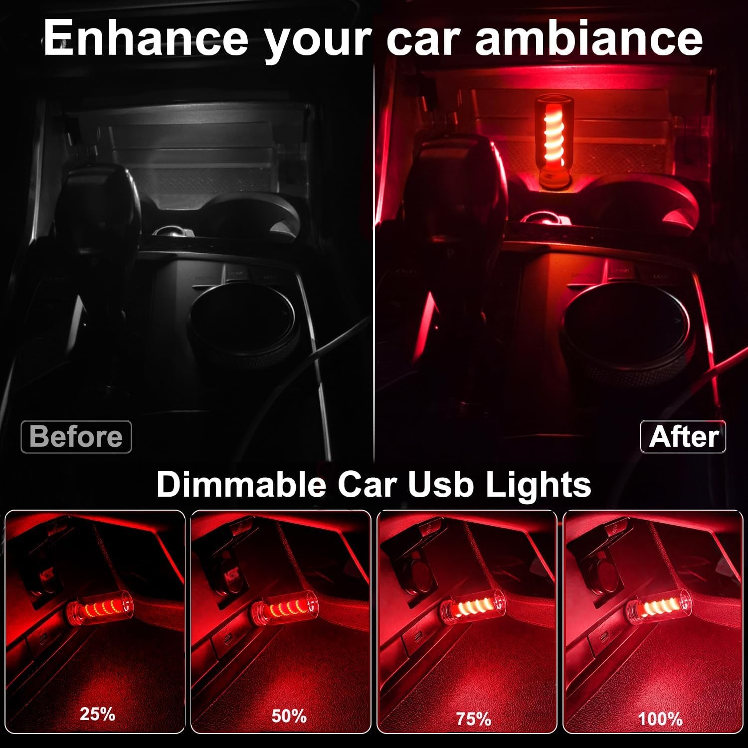 2PCS USB Light for Car, Touch Dimmable Car Interior Ambient Lights, Mini USB Red