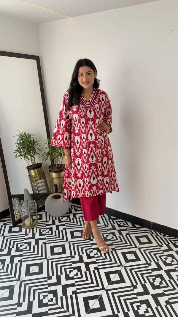 Bollywood Style Indian Pakistani Ikat Print Kurti Set Casual Party Wear Ethnic