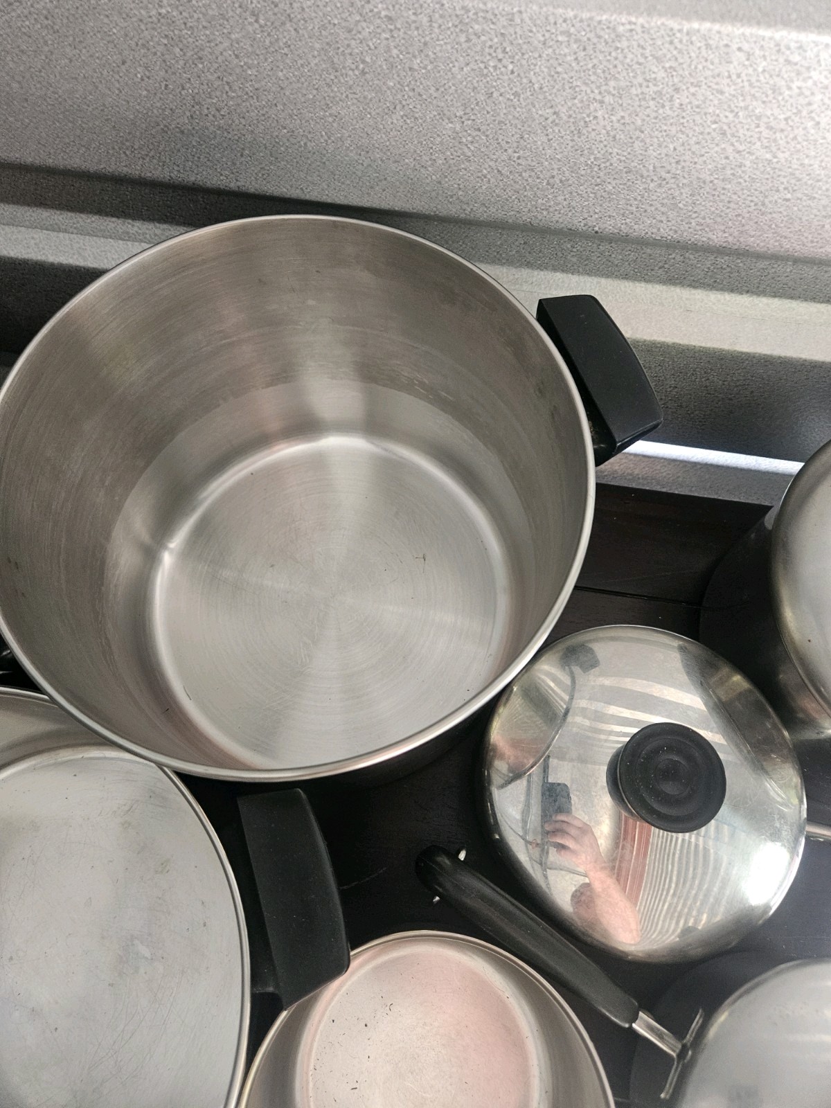 как выглядит Lot of 7 Vintage Revere Ware Pots 5 With Lids 3 Copper Bottom фото