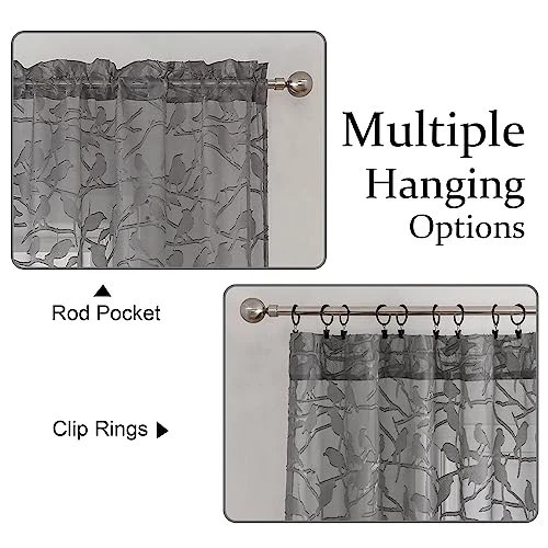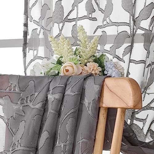 как выглядит Anji Bird Charcoal Sheer Curtains 45 Inches Long 38"W x 45"L Pack of 2 Grey фото