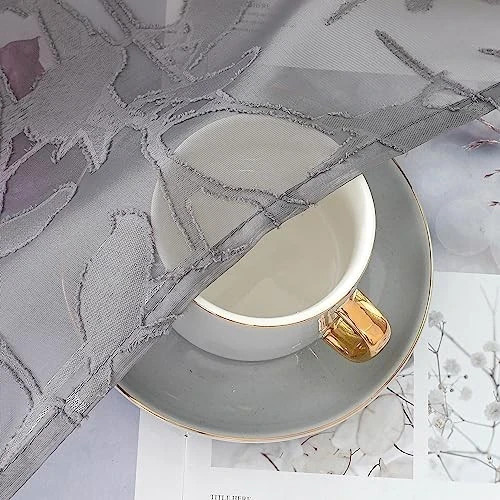 Anji Bird Charcoal Sheer Curtains 45 Inches Long 38W x 45L Pack of 2 Grey