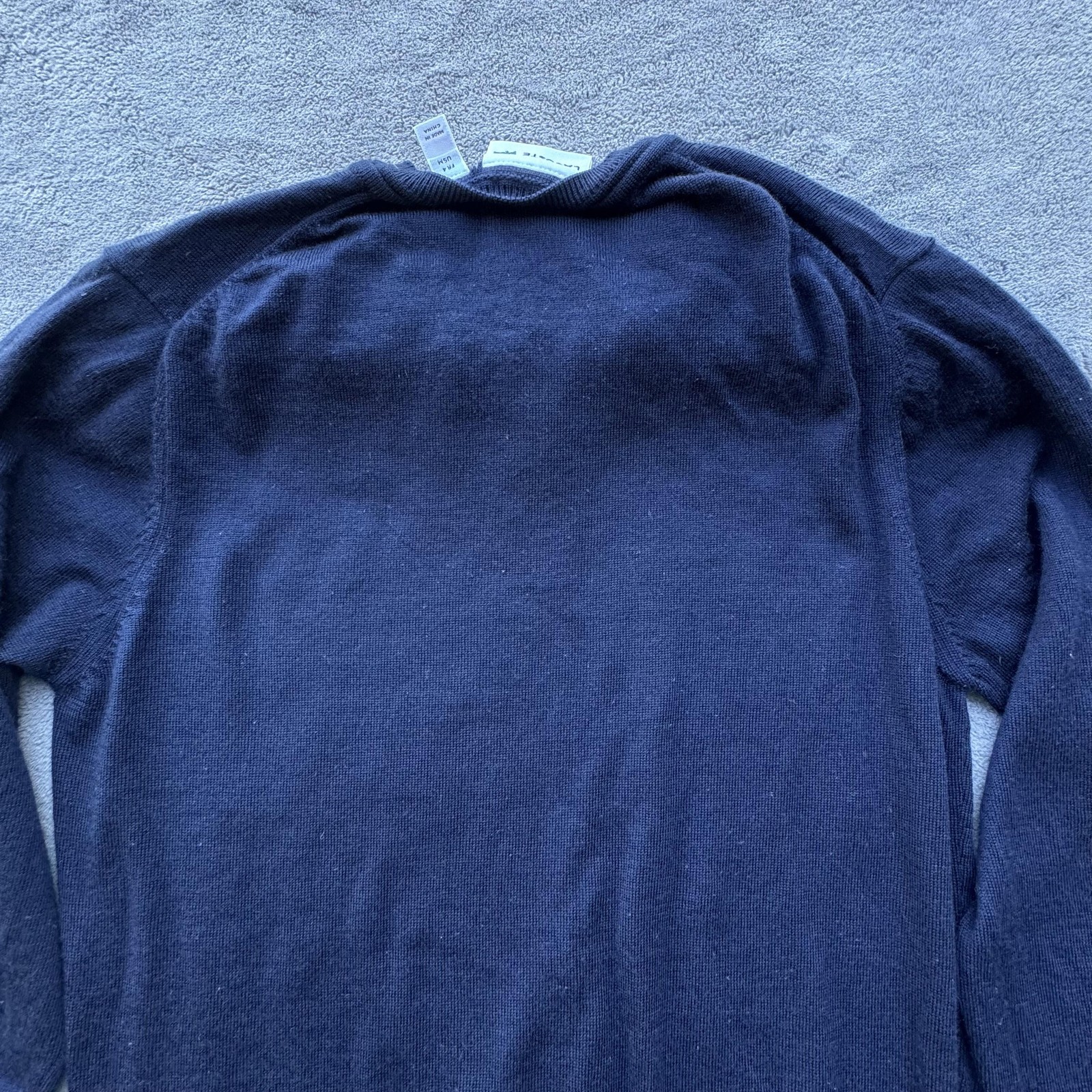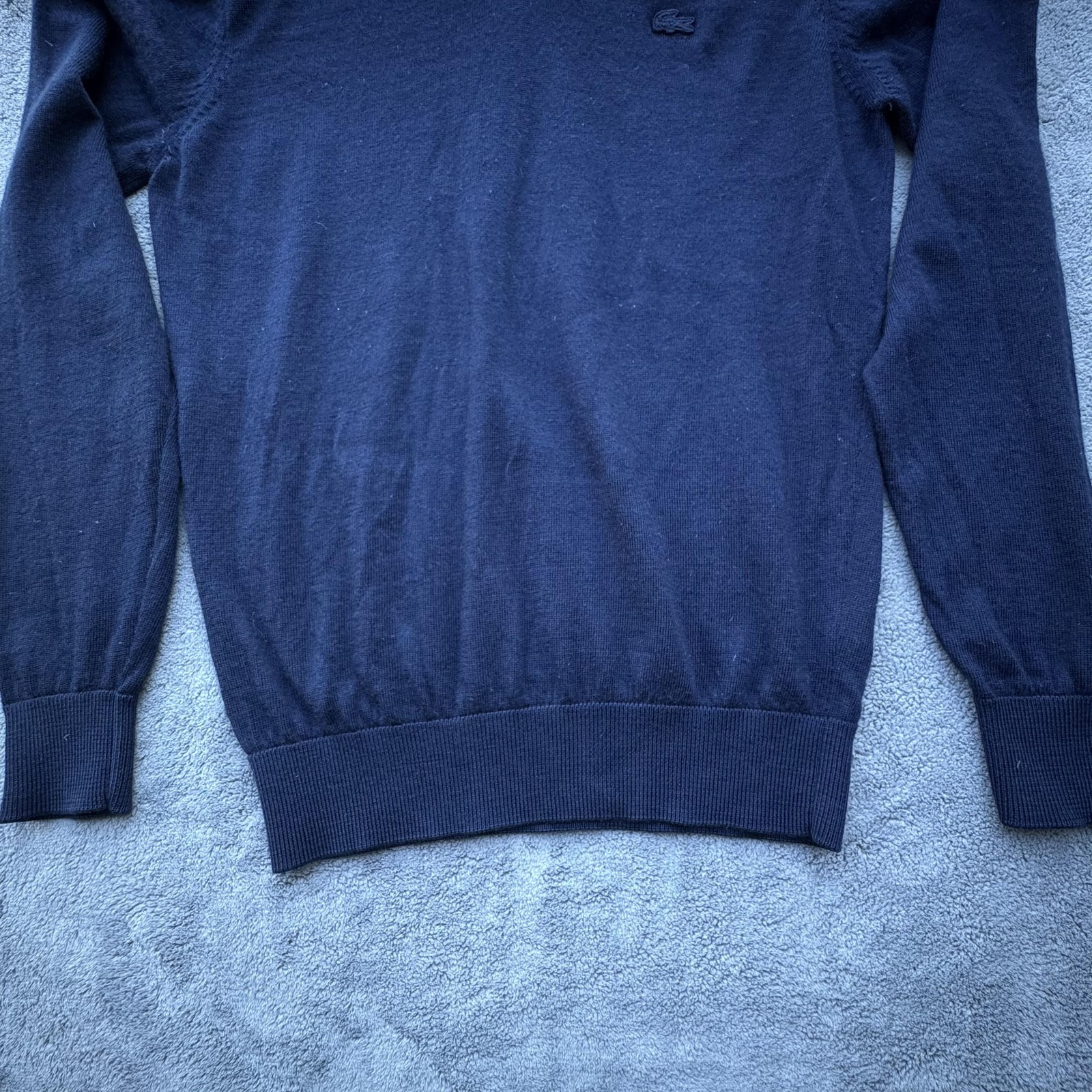 как выглядит Lacoste Sweater Mens Medium Navy Blue Merino Wool V Neck Pullover AH2987 фото