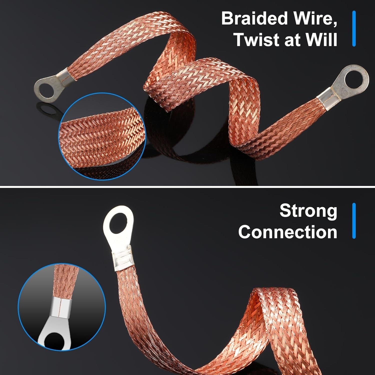 12 Pcs Universal Automotive Ground Straps, 10/15/20 Inch Engine Ground Strap Kit