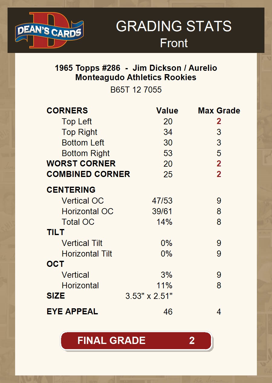 • 1965 Topps 286 Jim Dickson / Aurelio Monteagudo Athletics RCs RC 2 - GOOD