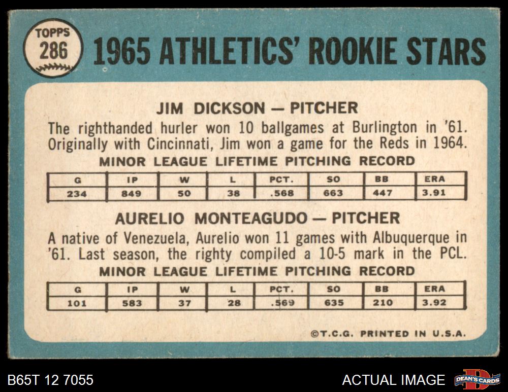 как выглядит 1965 Topps 286 Jim Dickson / Aurelio Monteagudo Athletics RCs RC 2 - GOOD фото