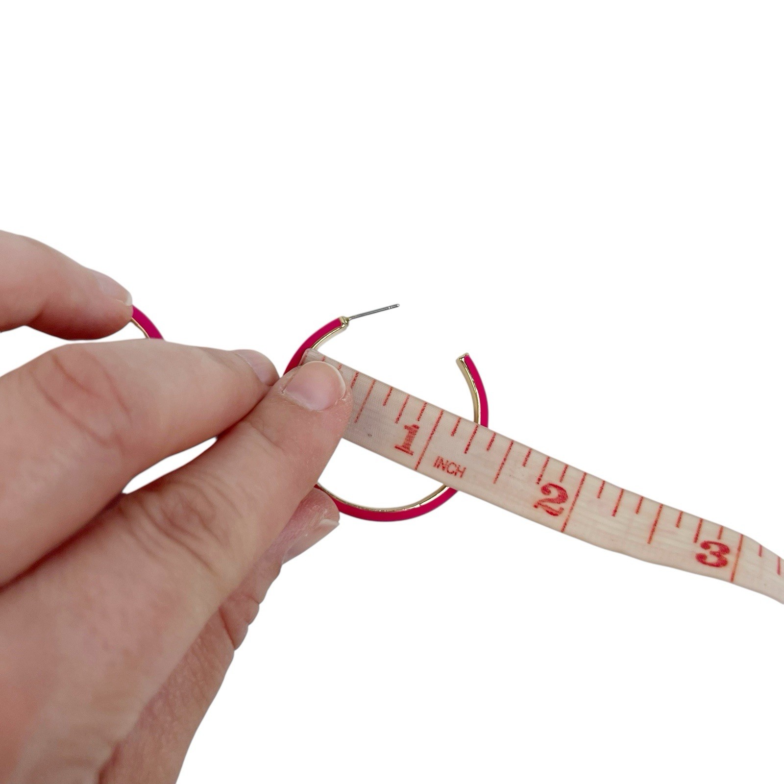 как выглядит Pink Fuchsia Enamel Gold Tone Pierced 1.25 Hoop Earrings Fun Colorful Party фото