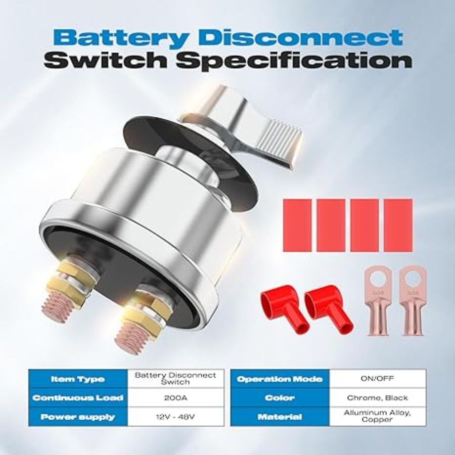Battery Disconnect Switch, 12-48V Battery Shut Off Switch High 200A Switch kit
