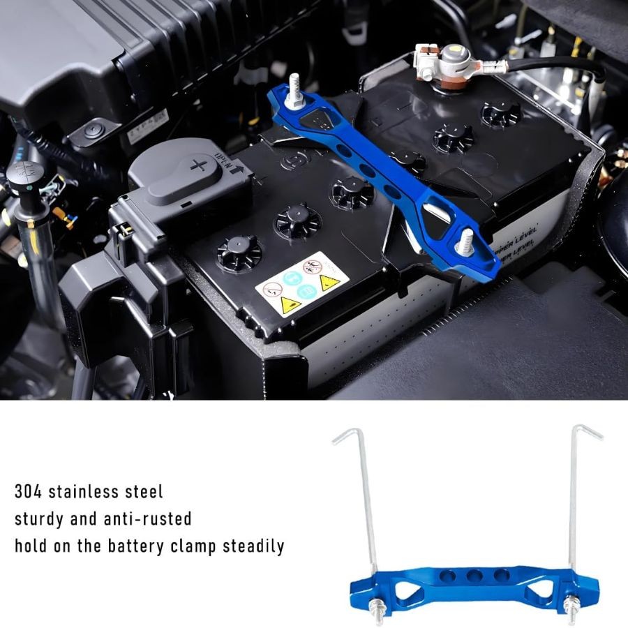 Battery Hold Down Sets, Aluminum Alloy Car Battery Holder Kit with J Hook Blue