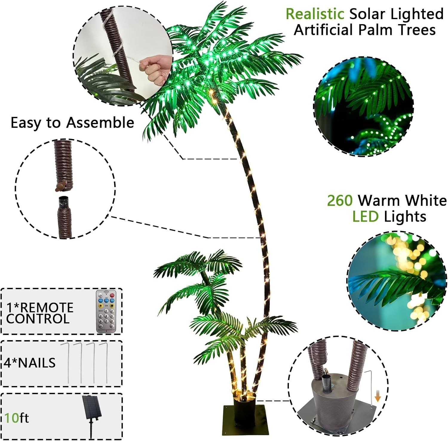6FT Solar Lighted Palm Tree with 260 LED for Tropical Decor - Indoor/Outdoor