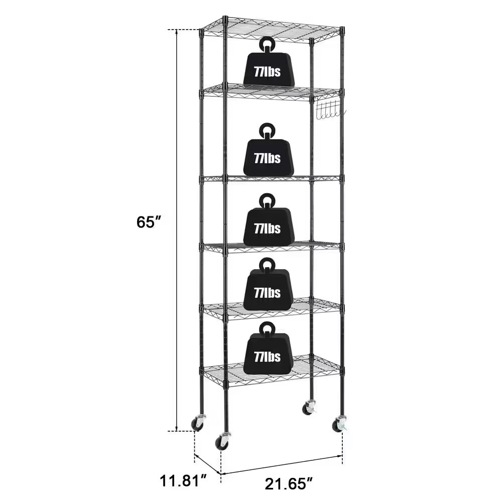 6-Tiers Steel Adjustable Garage Storage Shelving Unit in Black 21.66 In. W X 64