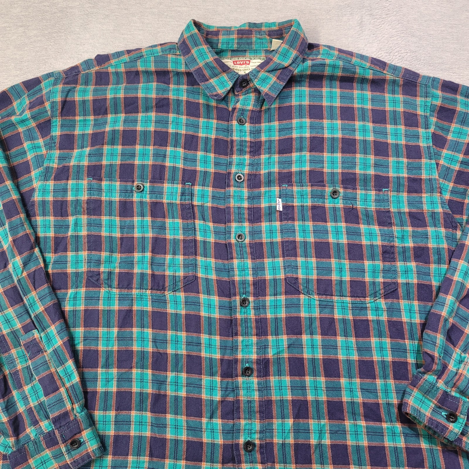 как выглядит Levis Flannel Shirt Mens Large Multicolor Plaid Shirt White Tab Button Up VTG фото