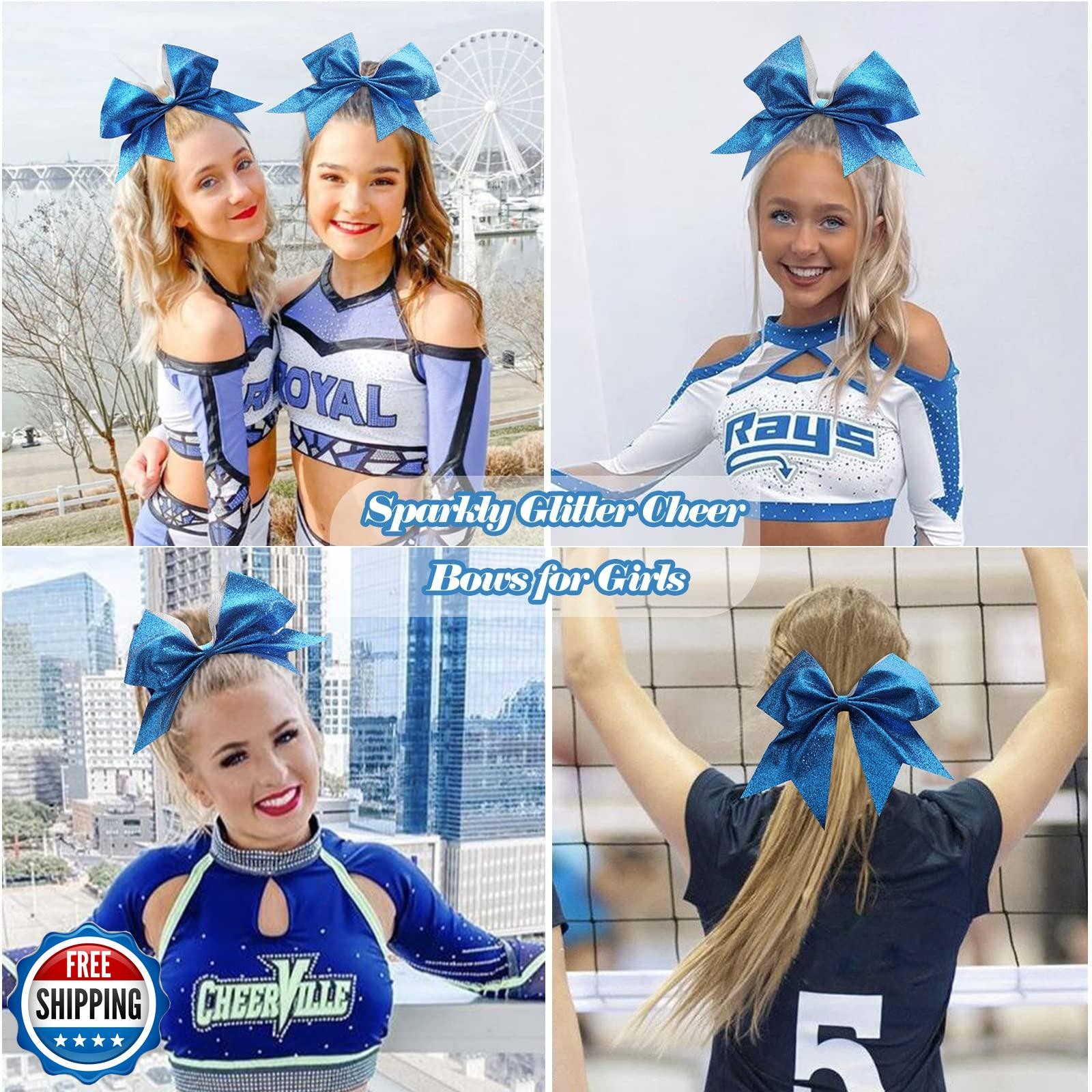 16PCS 8 Large Glitter Cheer Bows for Cheerleaders, CN Sparkly Hair Bows with