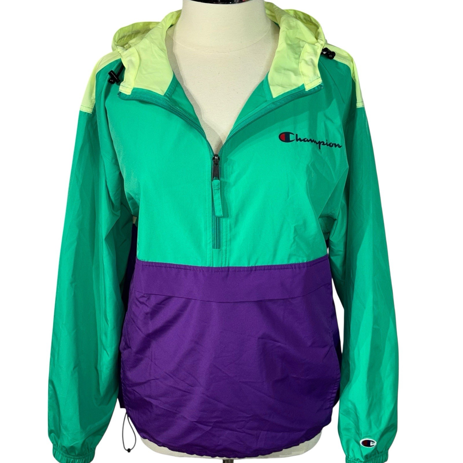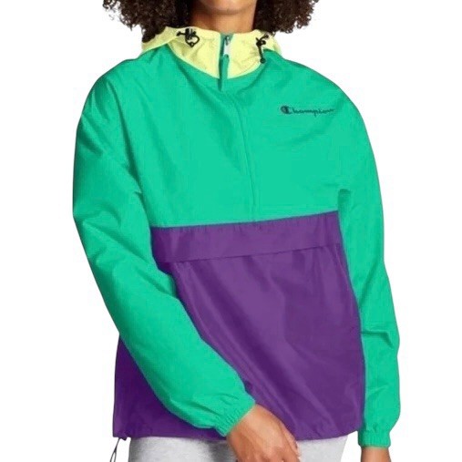 Champion Women s Colorblock Packable Half Zip Pullover Jacket M Retro Style