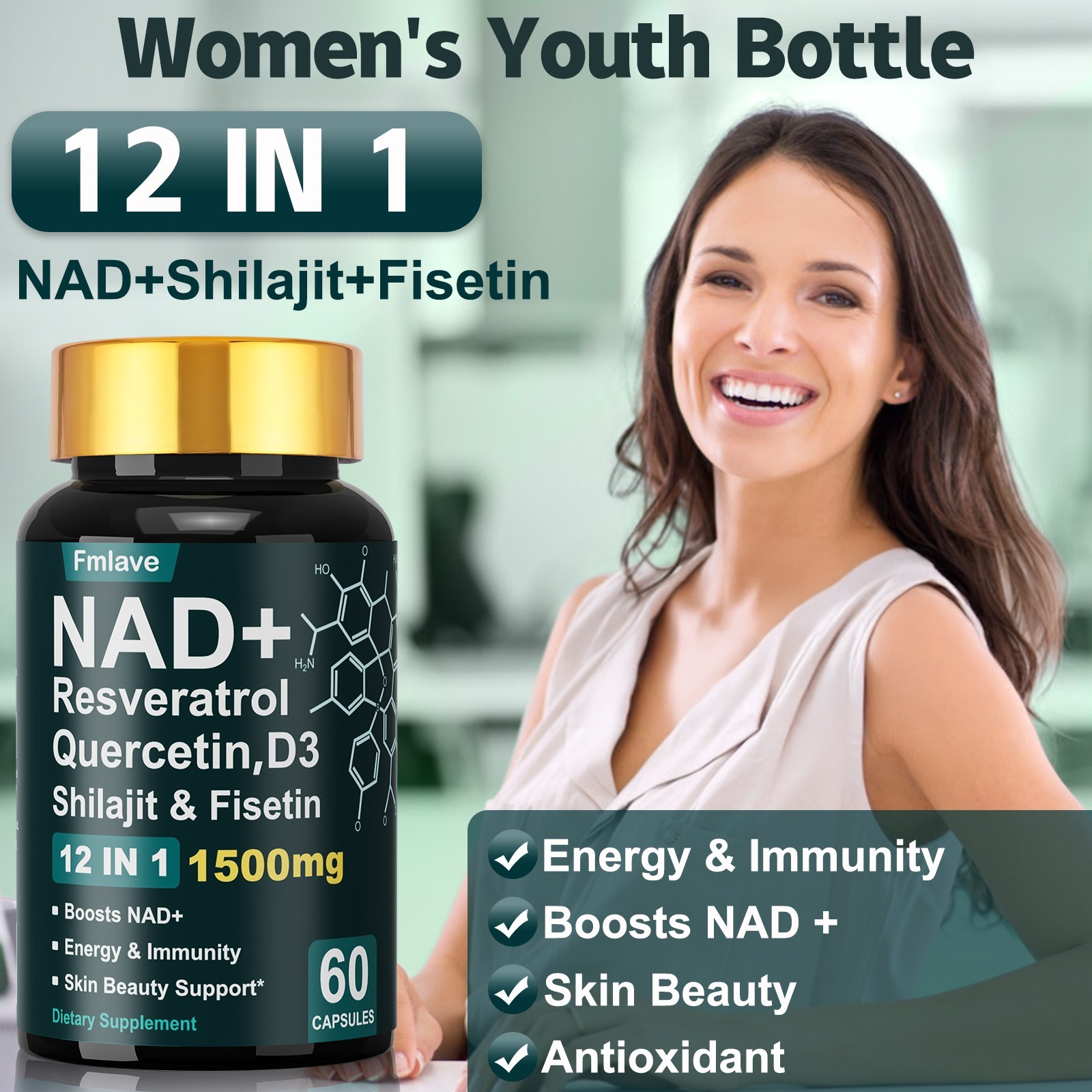 Active Ingredients: Nicotinamide Riboside, Turmeric, Vitamin D, Resveratrol, Shilajit, Fisetin