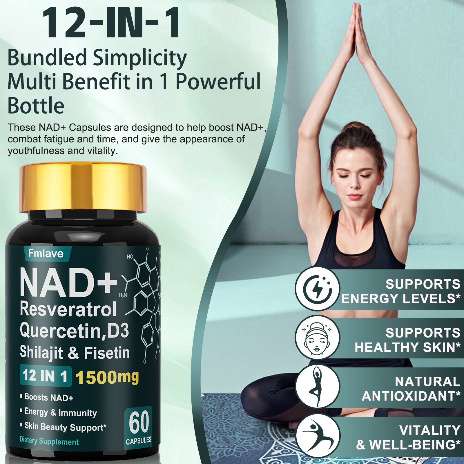 NAD supplement, 1500mg resveratrol containing supplement, 60 capsules USA Ship