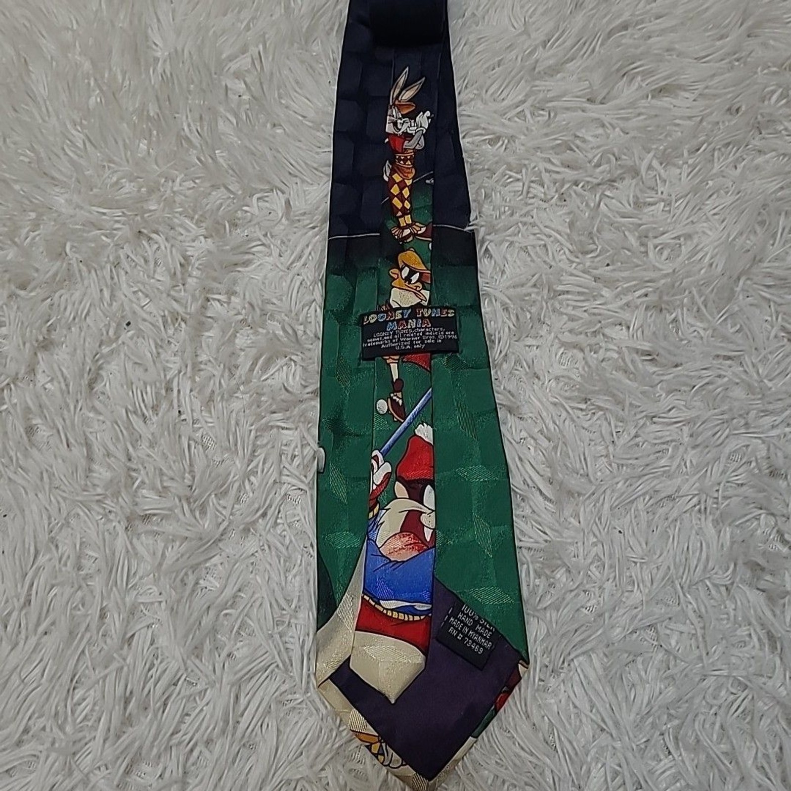 как выглядит Vintage Looney Tunes Silk Tie Golf Taz Daffy Duck Bugs Bunny Hand Made Myanmar фото