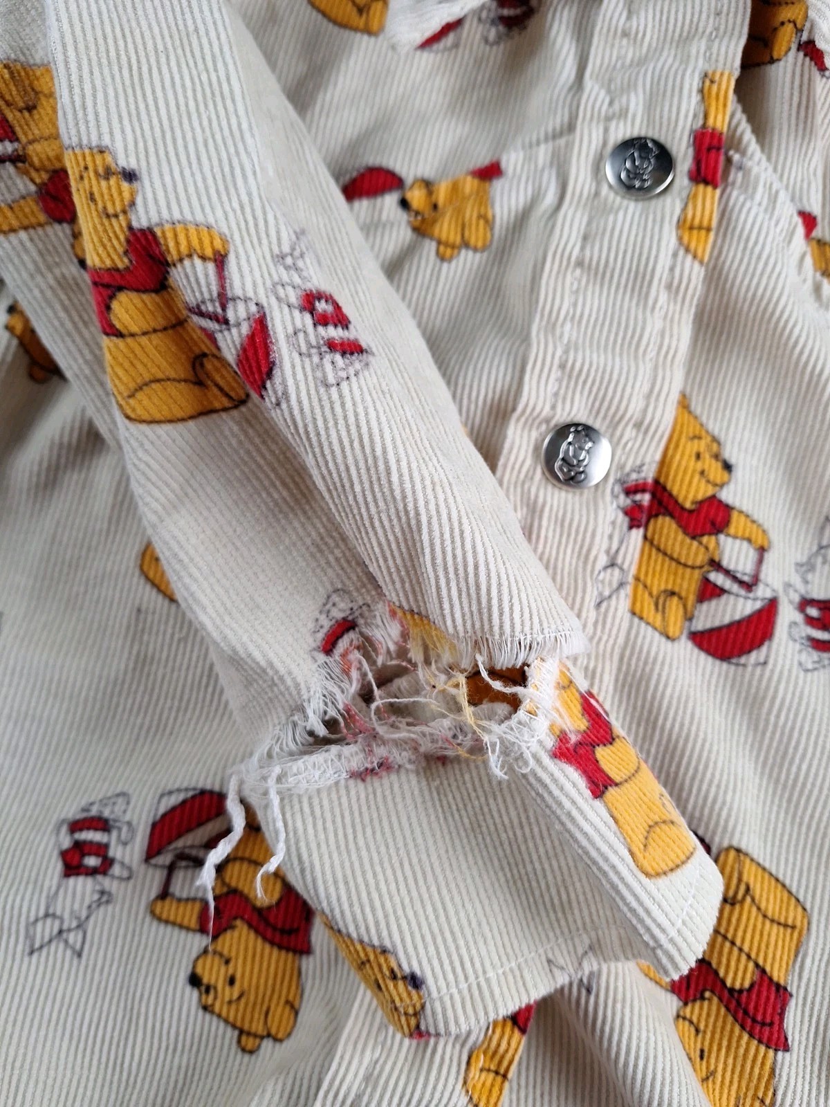 как выглядит Vtg AS IS Disney Winnie The Pooh Sears Corduroy Shirt All Over Pooh Print 7FB фото