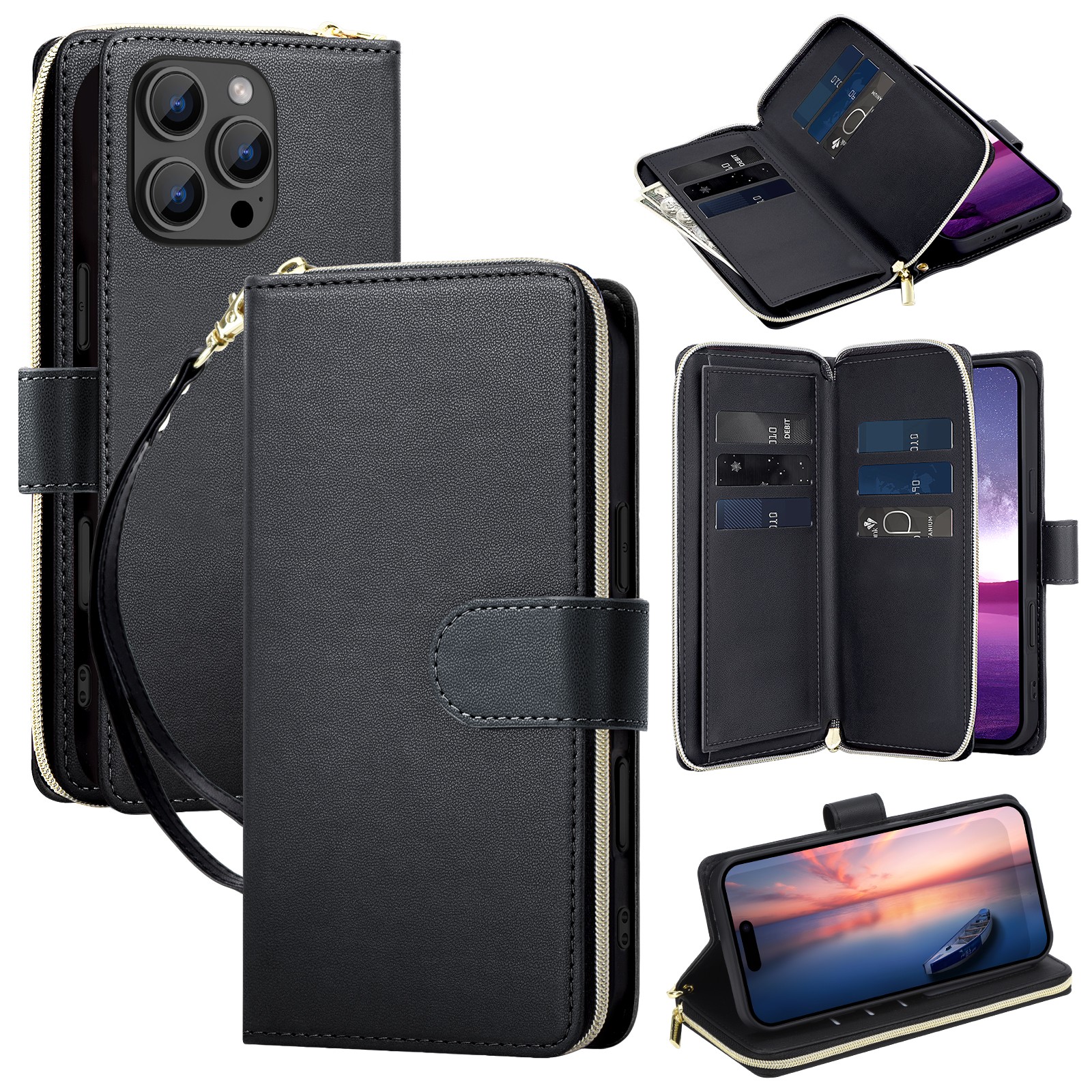 Crossbody Zipper Leather Flip Wallet Case For iPhone 17 Pro Max 16e 15 14 13 12