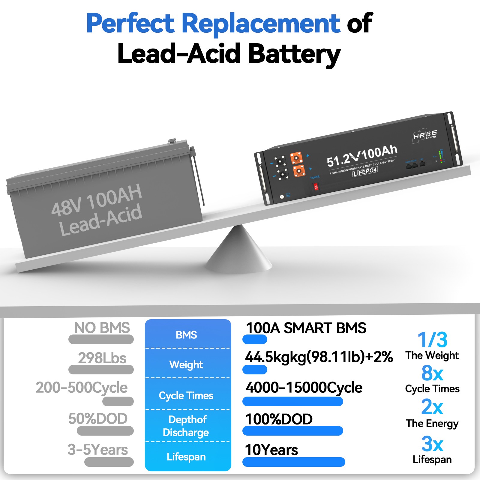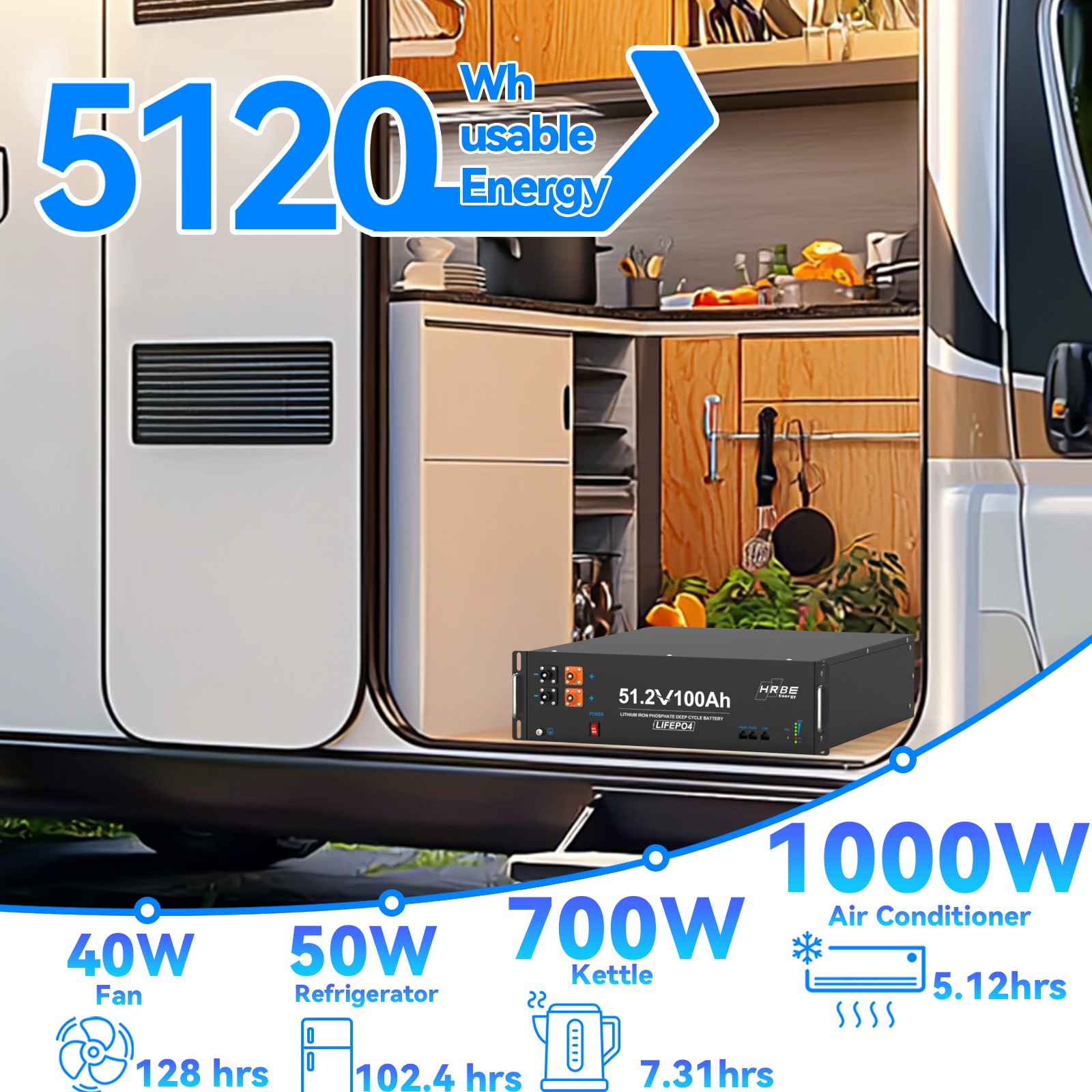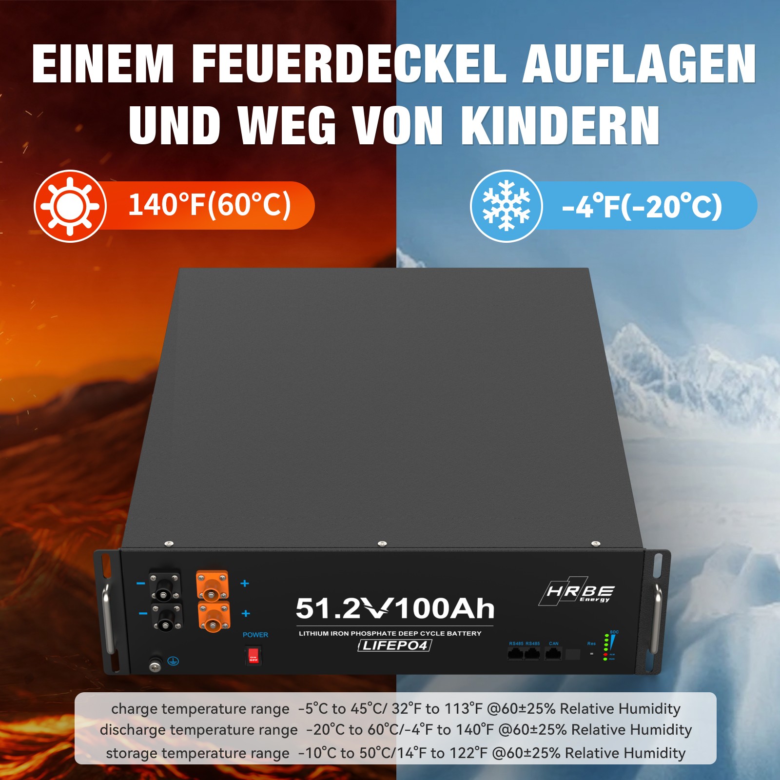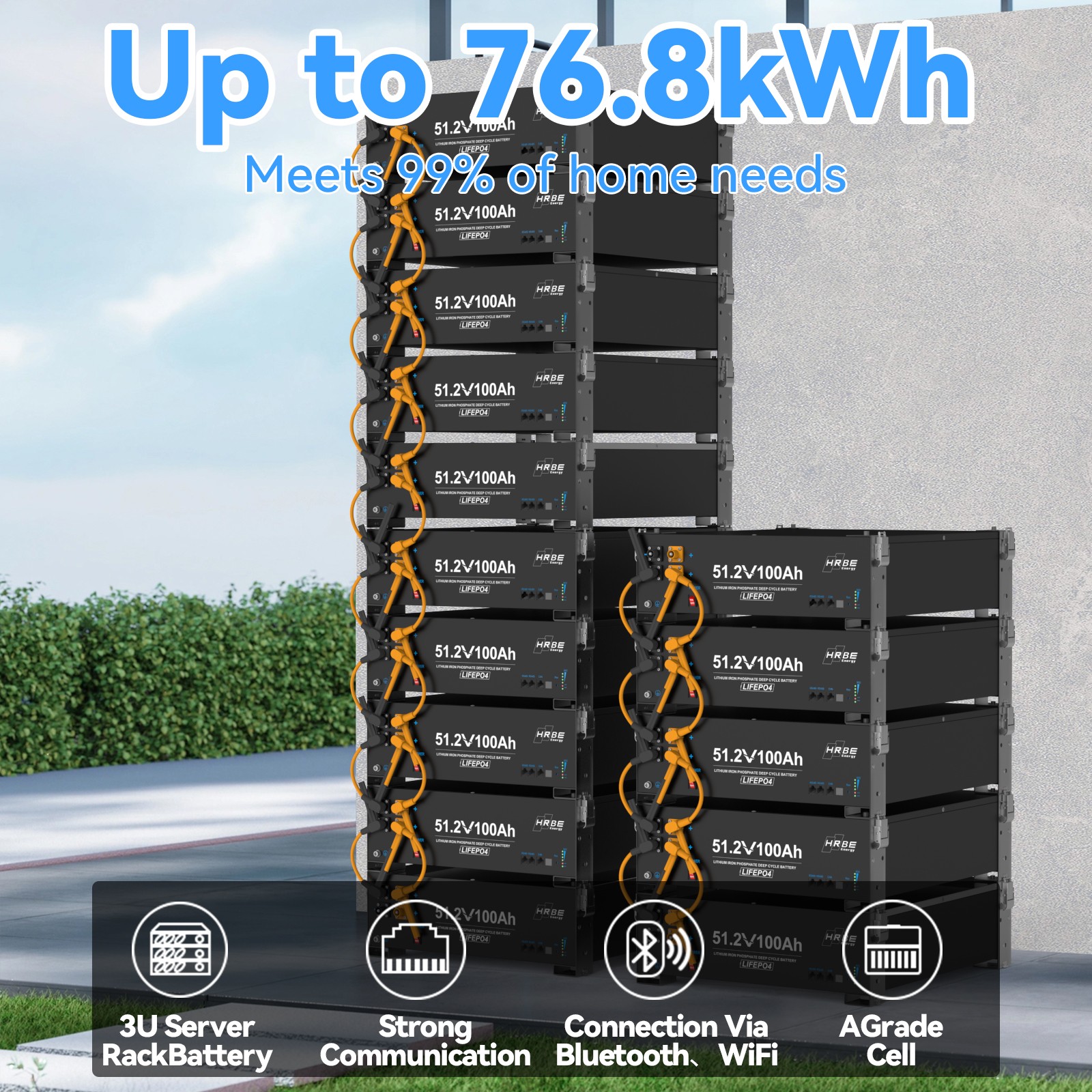 HRBEENERGY 5.12kWh 48V 100AH Server Rack LiFePO4 Lithium Battery 3U 5.12KWH