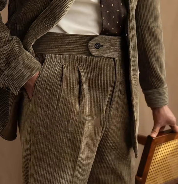 Business Betro Casual Corduroy Men's Suit Set Corduroy Coat Corduroy Straight