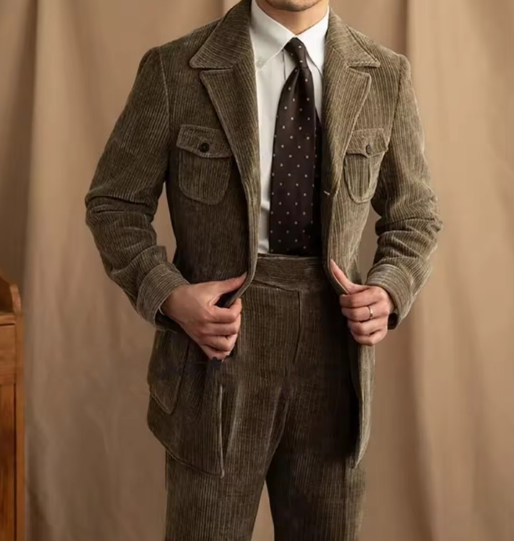 как выглядит Business Betro Casual Corduroy Mens Suit Set Corduroy Coat Corduroy Straight фото