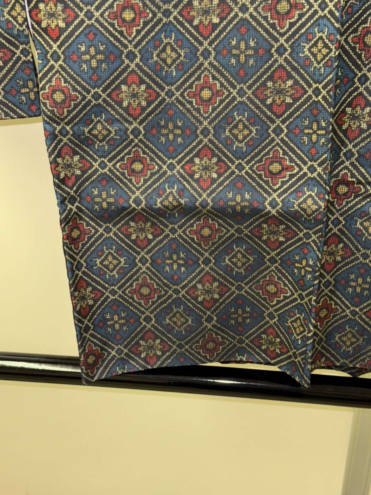 как выглядит Japanese Vintage Kimono Haori Jacket Silk Navy Oshima Tumugi Traditional 28in фото