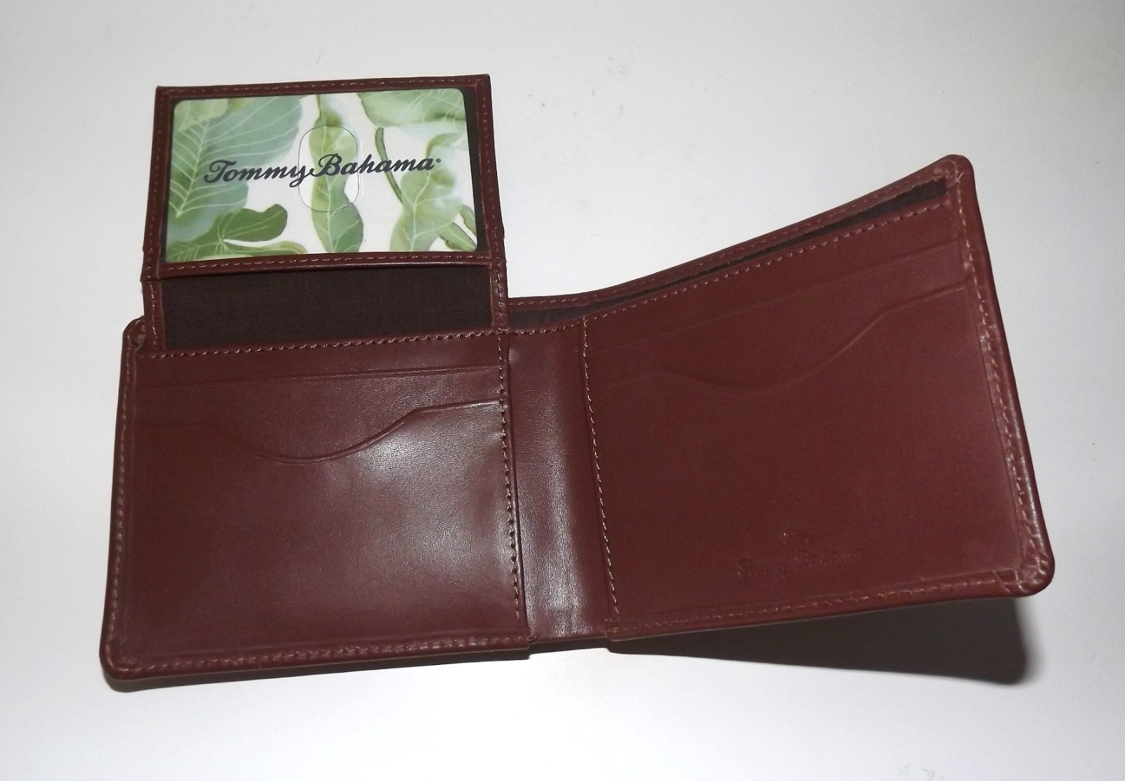как выглядит NEW TOMMY BAHAMA MENS LEATHER BIFOLD PASSCASE WALLET TAN фото