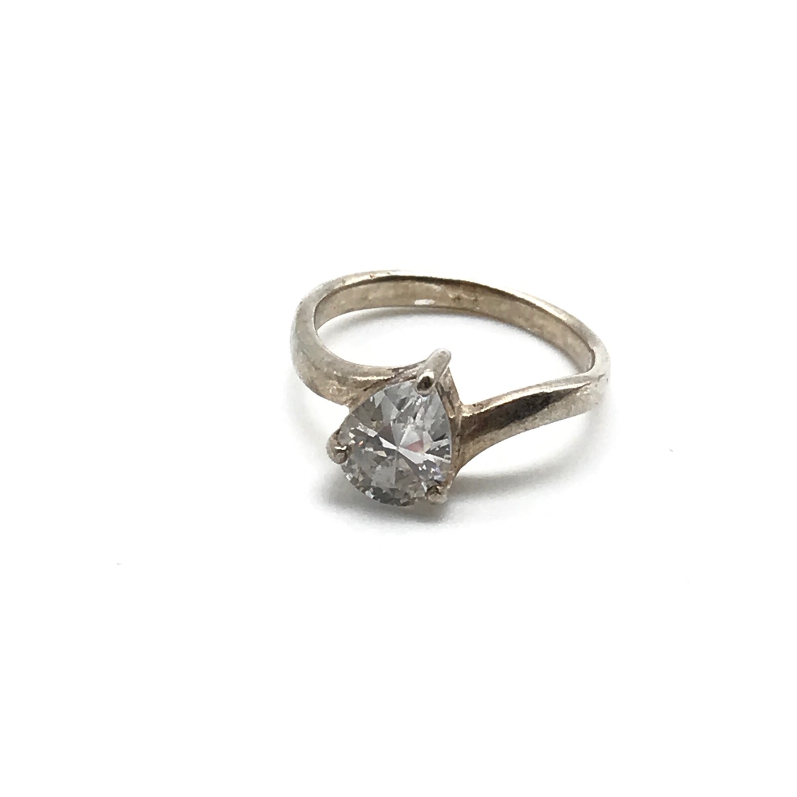Vintage 925 Sterling Silver Pear Clear CZ Solitaire Ladies Band Ring Size 7.75