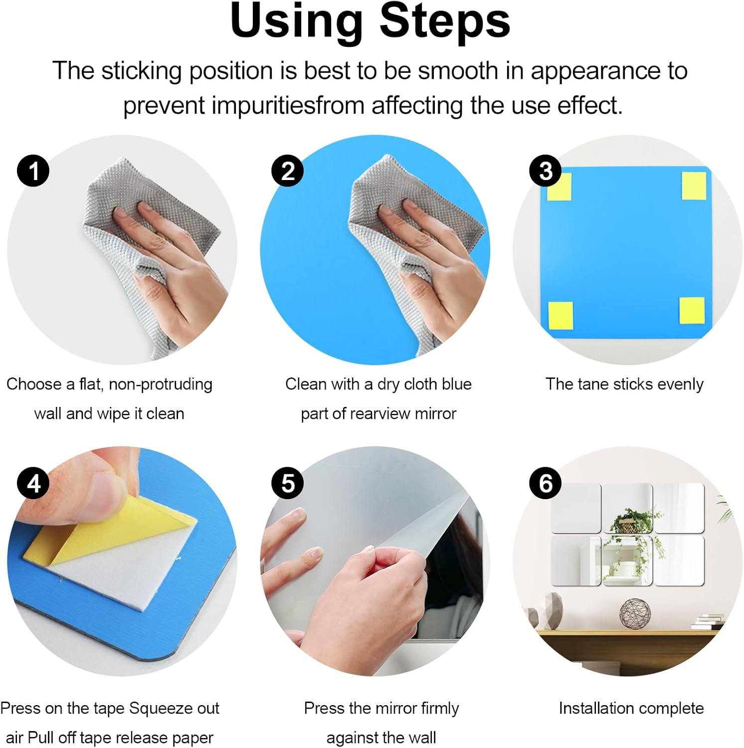 4 Pcs Wall Mirror Tiles, 8 X 8 Inch Self Adhesive Acrylic Square Mirror, Flexibl