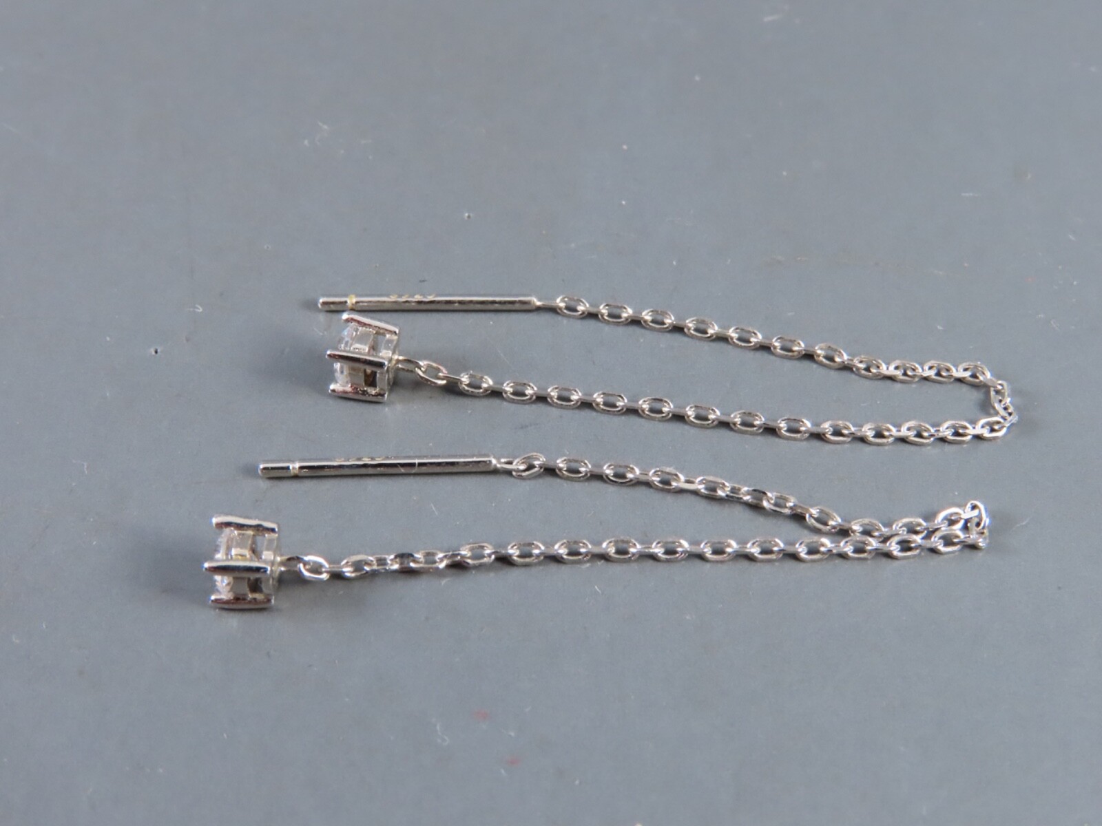 как выглядит STERLING SILVER Super Sweet THREADER STYLE DANGLE EARRINGS Clear CZ Drops фото