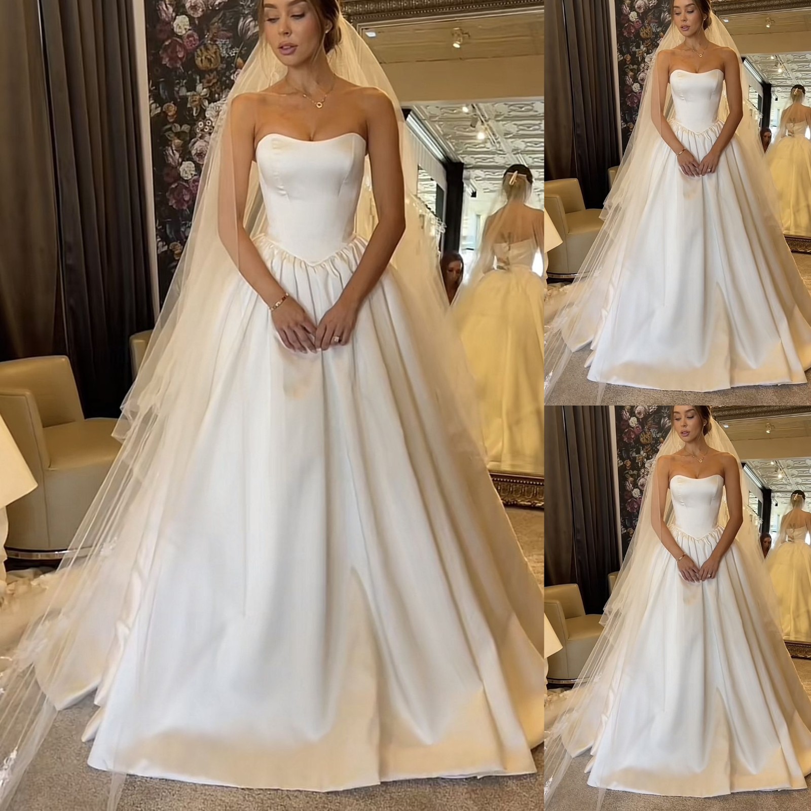 как выглядит Sleeveless Wedding Dresses Satin Sweetheart A Line White Ivory Bridal Gowns фото