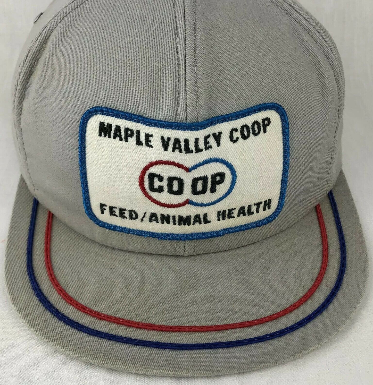 Maple Valley Coop Feed Animal Patch SnapBack Trucker Hat Cap K Products Gray Vtg
