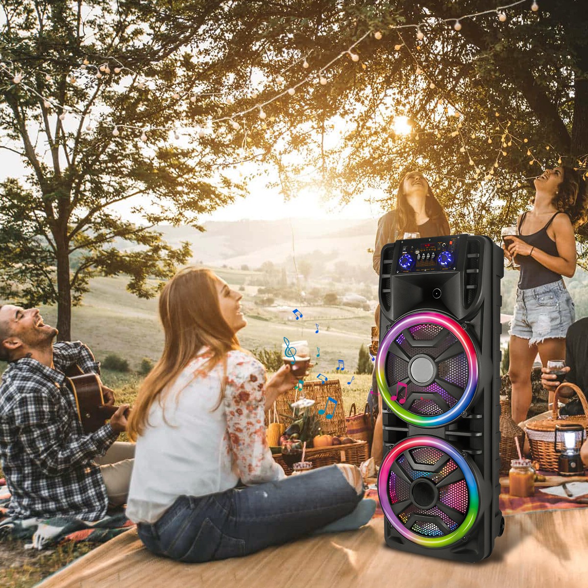 Dual 12 Portable Bluetooth Speaker Subwoofer Party Heavy Bass Sound System