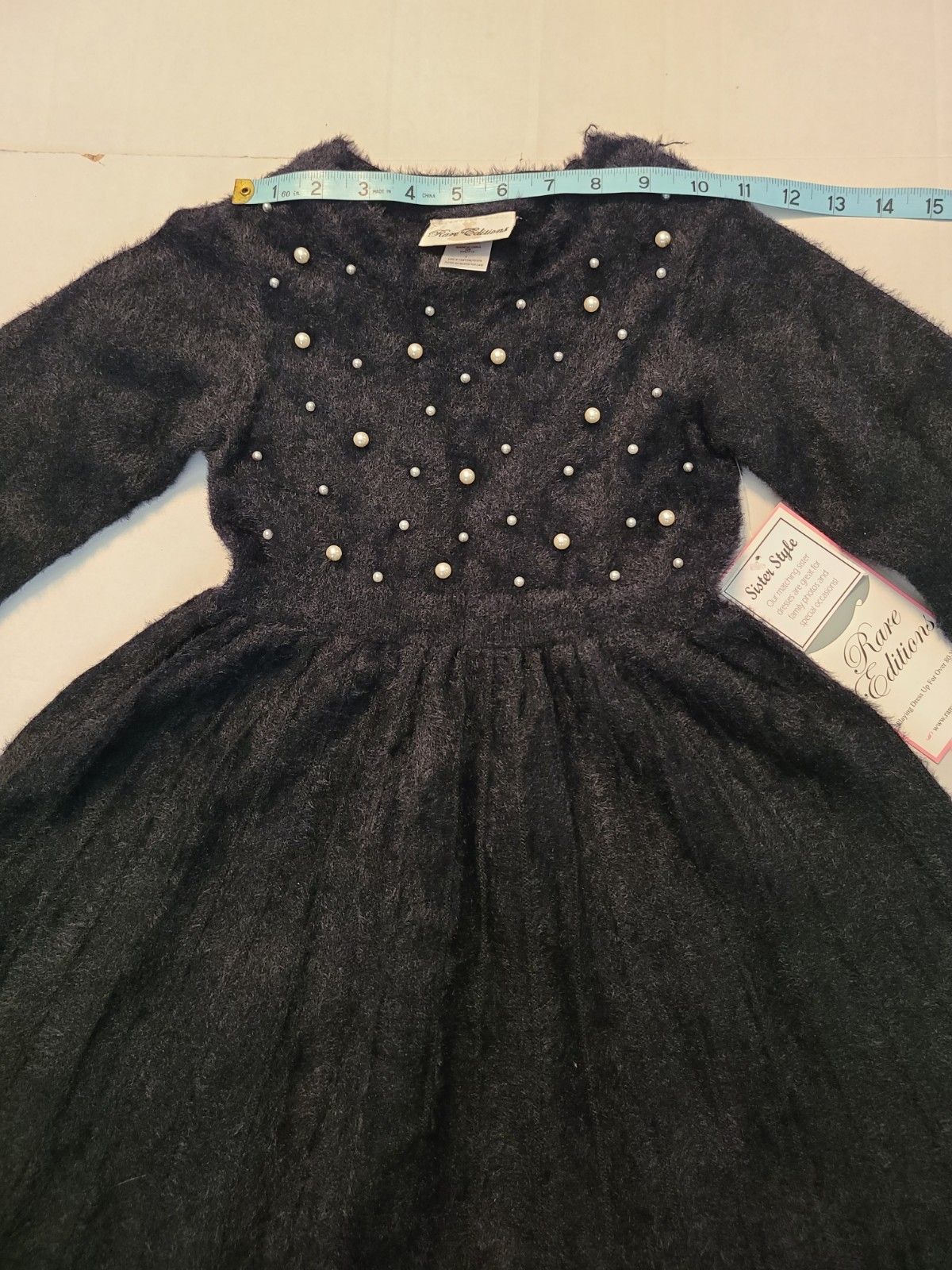 Rare Editions Cozy Holiday Elegant Black Girls Dress with Pearl Accents 5 NWT