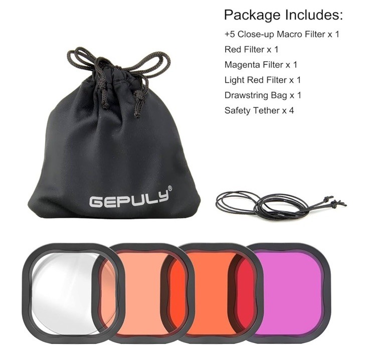 Gepuly Diving FIlters For GoPro HERO 8/9/10/11/12 Housing Pack of 4 New