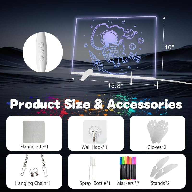Acrylic Dry Erase Board with Light,Led Note Board with Colors 13.8X10 4 Modes
