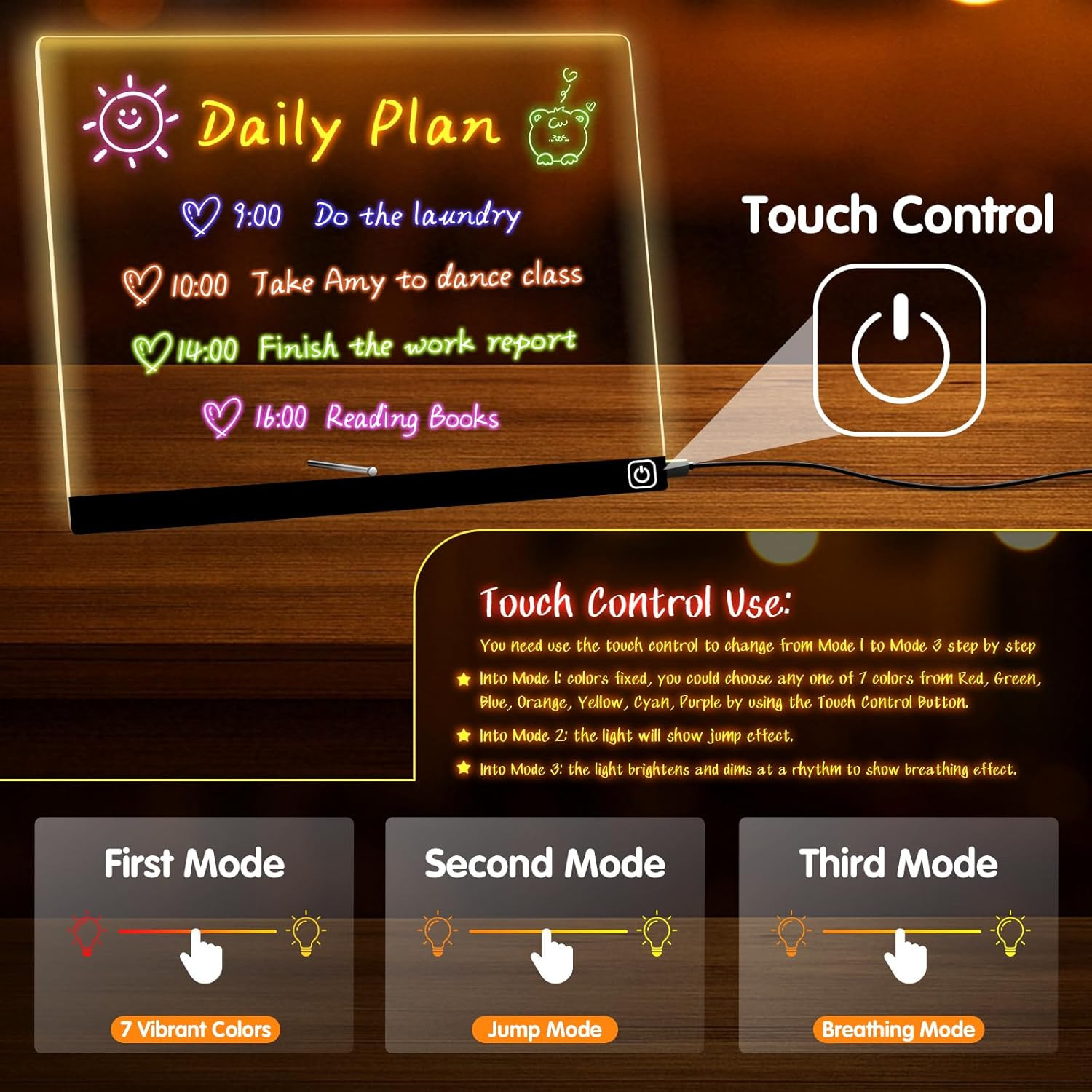 LED Note Board with Colors, 11.8X9.4 Led Drawing Board Acrylic Dry Erase Board