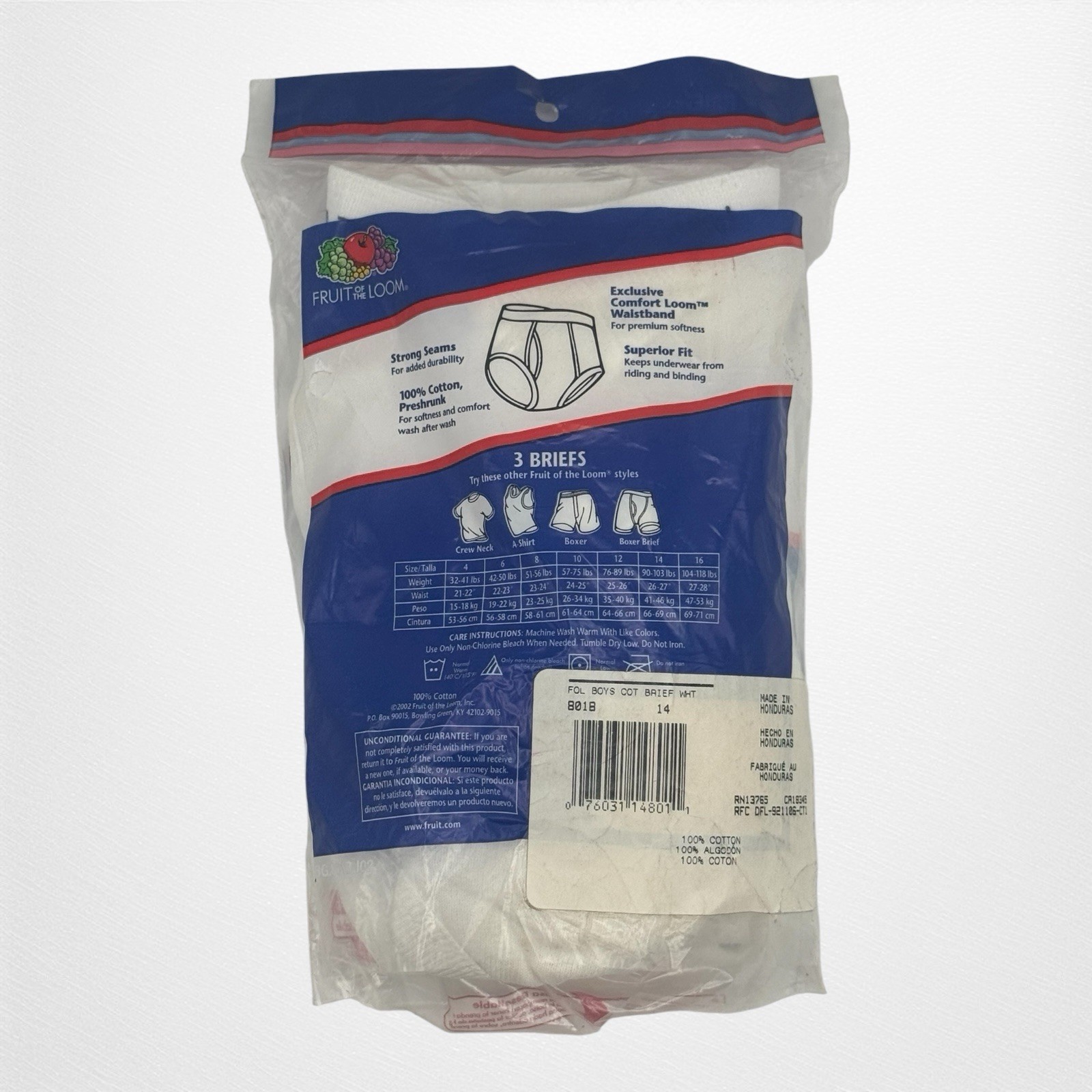 Vintage2001 Unopened Boys 3 Pack Fruit of the Loom White Underwear Briefs Sz 14