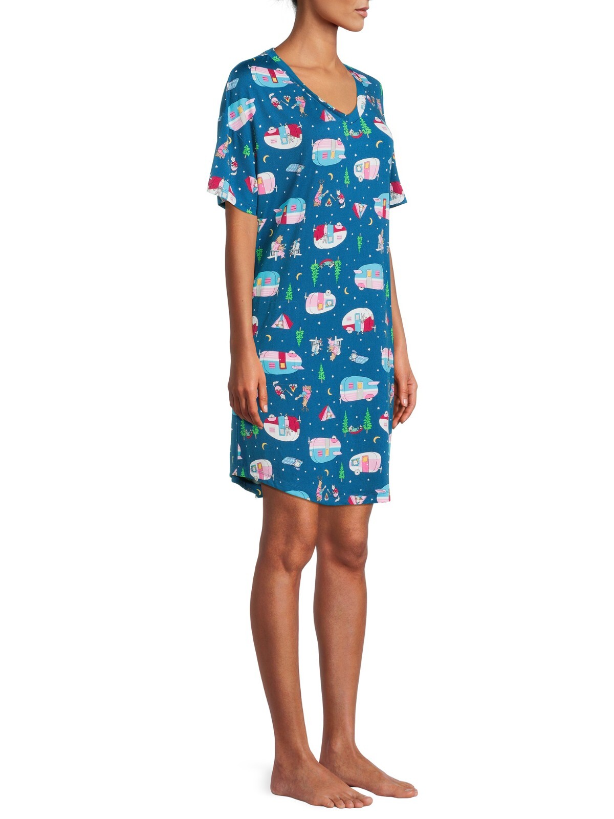 как выглядит SECRET TREASURES CAMPING GREEN BLUE TENT TRAILER SLEEPSHIRT NIGHTGOWN 2X /3X фото