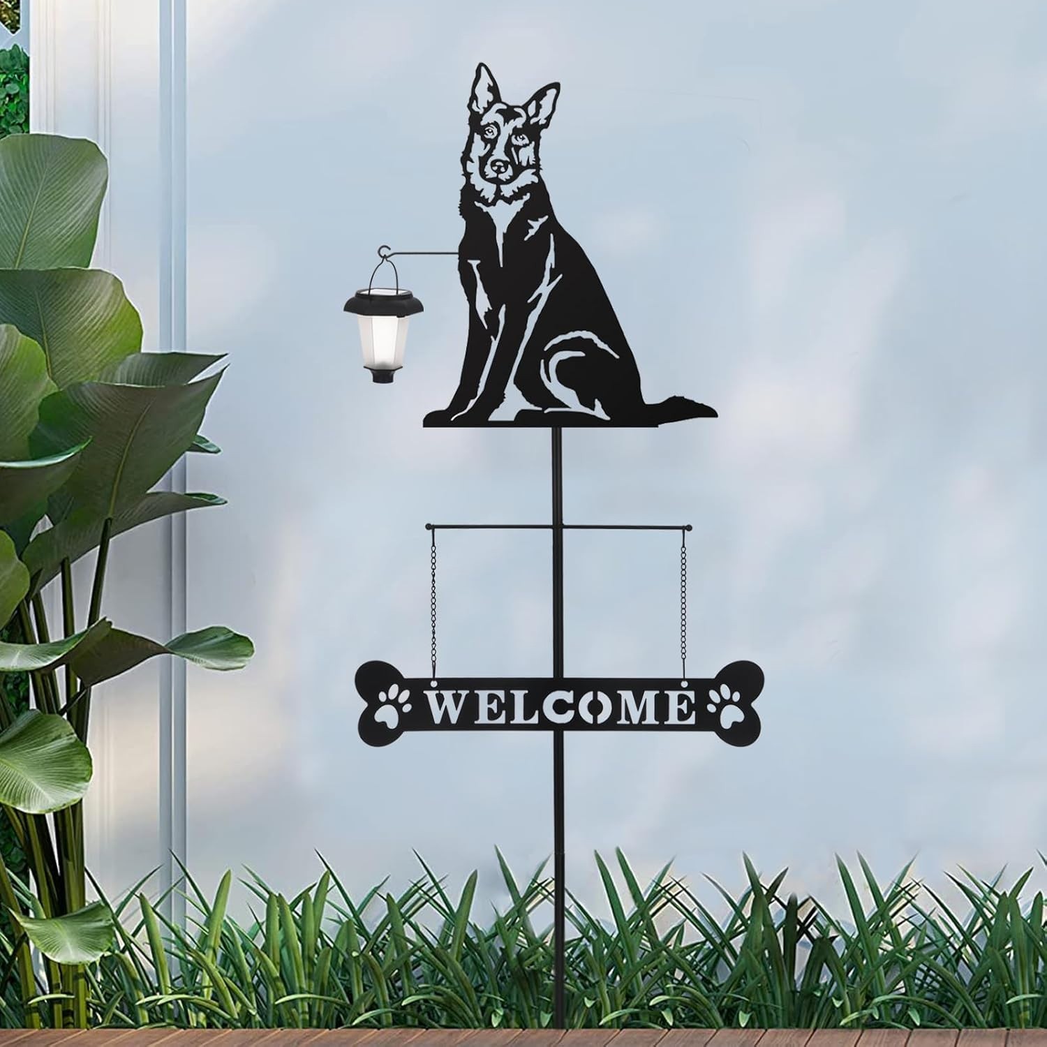 Durable Solar-Powered German Shepherd Welcome Sign for Perfect Outdoor Greeting