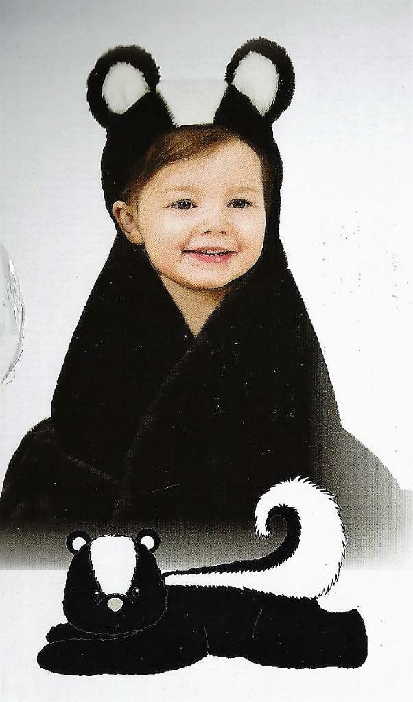 Little Miracles Skunk Animal Hugs Hooded Black White Stripe Baby Blanket 30x36